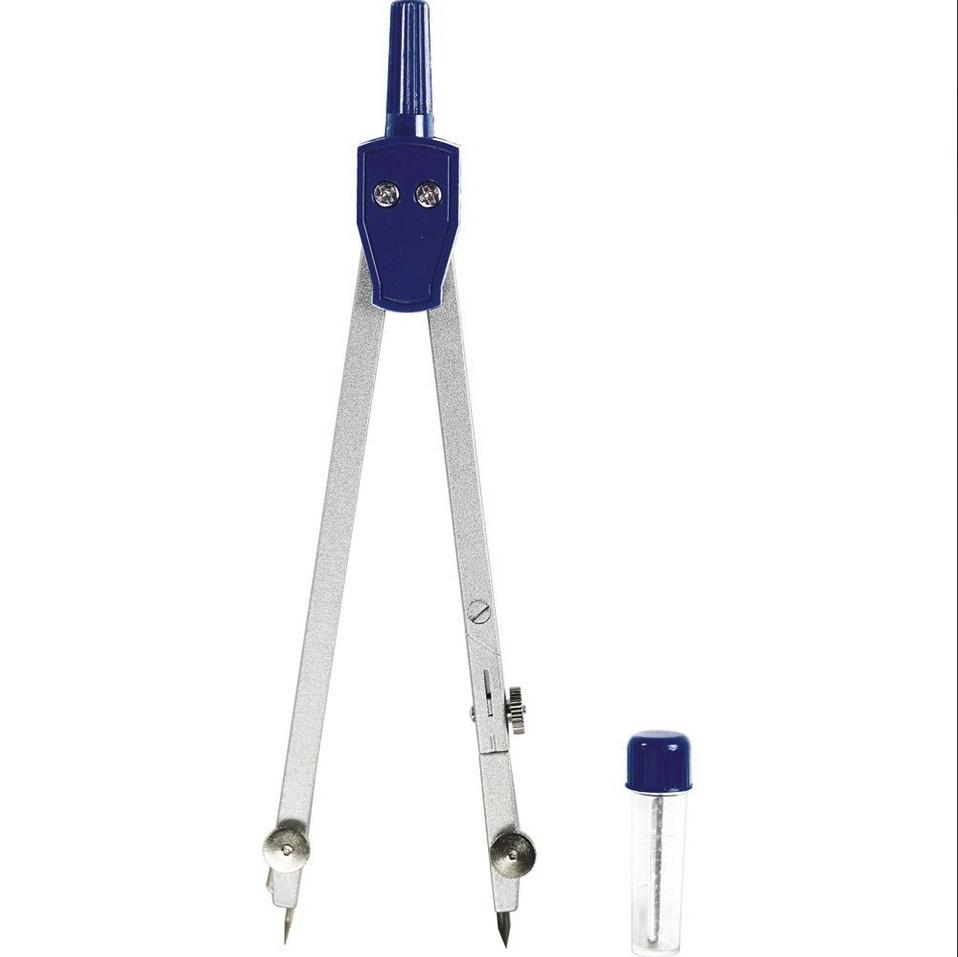 komplet dwuelementowy w plastikowym etui zawiera cyrkiel i zapas grafitów