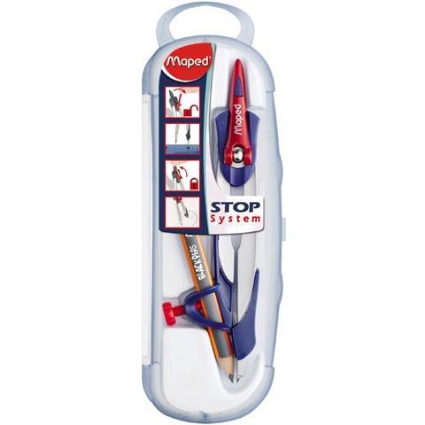Cyrkiel metalowy STOP SYSTEM w plastikowym etui w zestawie z ołówkiem. Opatentowany system blokady ramion w określonej pozycji. Specjalna nakładka na igłę zabezpiecza przed skaleczeniem. JS 1 szt.