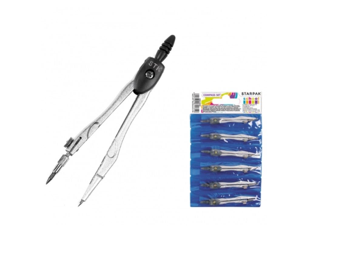 6-pak cyrkli szkolnych w foliowym opakowaniu z zawieszką, idealny do szkolnego sklepiku.