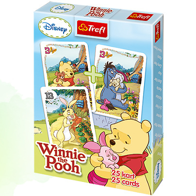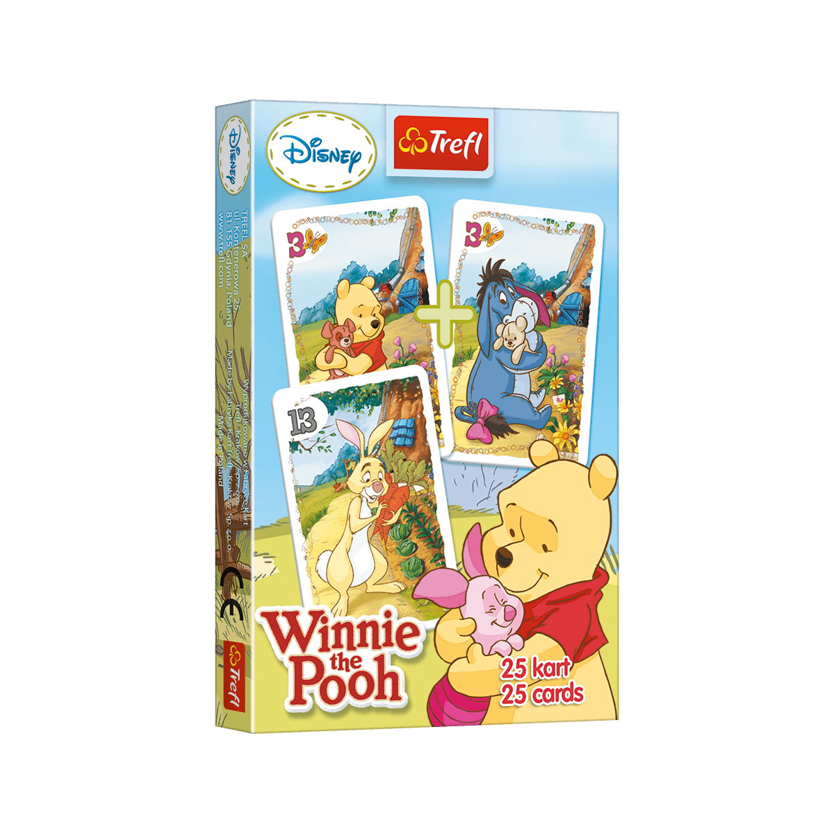 Piotruś"" to gra, którą znają wszystkie polskie dzieci. Proste zasady i szybka, emocjonująca rozgrywka to przyczyny jej sukcesu i popularności. Jeśli dodać do tego karty z wizerunkami najbardziej popularnych postaci z bajek, kreskówek, komiksów i filmów - otrzymujemy produkt, który kochają wszystkie dzieci.W grze bierze udział od 2 do 4-5 graczy, którzy mają za zadanie dobrać karty w pary i jak najszybciej pozbyć się swojego wachlarza. Gracze sami wybierają wariant gry - czy rozdają wszystkie karty i losują je od sąsiada, czy przeznaczają do losowania część talii. W talii znajduje się ""Piotruś"", czyli karta bez pary. Ten, kto zostanie z nią na koniec gry, przegrywa rozgrywkę.Gra zapewnia dużą dawkę śmiechu i ćwiczy spostrzegawczość. Wizerunki bohaterów bajki Przygody Kubusia Puchatka na kartach sprawią, że zabawa będzie jeszcze lepsza.  Talia zawiera 25 listków karcianych