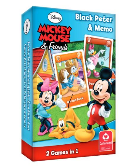 Gra dla dzieci Czarny Piotruś i Memo z postaciami Myszki Miki.
