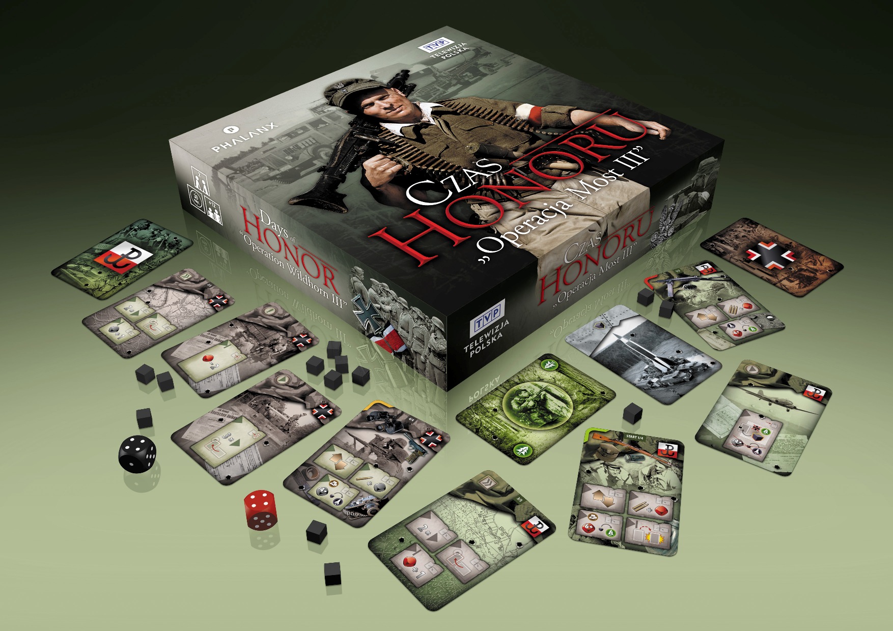 CZAS HONORU: Operacja Most III to taktyczna, wojenna gra karciana dla 2 osób, którą można rozegrać w czasie 30 minut. Gra została wydana na licencji Telewizji Polskiej S.A. Jest rok 1944, Niemcy w tajnym poligonie rakietowym w Bliźnie intensywnie pracują nad rakietami balistycznymi V-2. Broń ta ma w zamyśle kierownictwa III Rzeszy rzucić Anglię na kolana i odwrócić niekorzystny bieg wojny. Polskie Państwo Podziemne trafnie ocenia wielkie znaczenie tych prac i kieruje do rozszyfrowania tajemnic poligonu najlepszych żołnierzy Armii Krajowej. Rozpoczyna się dramatyczna walka wywiadów, której stawką jest życie tysięcy mieszkańców Londynu, a może i wynik całej wojny. Testy dalekosiężnych rakiet wymuszają na Niemcach prowadzenie działań na rozległym obszarze, łatwym do spenetrowania przez członków polskiego wywiadu. W szeregu brawurowych akcji części, a nawet cały korpus rakiety V-2, wpadają w ręce żołnierzy Armii Krajowej. Najważniejsze elementy, dokładnie zbadane przez najlepszych polskich inżynierów, mają być przerzucone na zachód podczas akcji o kryptonimie ,,Most III"". Dwusilnikowy samolot Douglas C-47 Skytrain startuje z wyzwolonych Włoch, by wylądować na polowym lotnisku w Polsce i odebrać bezcenny ładunek. Ale Niemcy nie są bezczynni i w okolice objęte polskimi działaniami kierują dodatkowe siły. W pudełku gry znajdą się: 23 karty polskie, 23 karty niemieckie, 5 kart prób rakietowych, 3 karty terenu, 1 karta pomocy, 15 drewnianych kostek części rakiet, 2 drewniane kostki do gry oraz instrukcja.