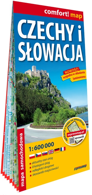 Barokowy kompleks Kuks, słynne Karlowe Wary, tętniąca życiem Praga i usiana winnicami morawska Plava. Tradycyjna drewniana zabudowa Vlkolineca, malowniczo położona na wzgórzach Bańska Szczawnica, zapierające dech w piersiach kaniony i wodospady w Słowackim Raju oraz wspaniały Zamek Spiski. Zarówno w Czechach, jak i na Słowacji nie brakuje atrakcji. Dwustronnie laminowana, trwała i wygodna w użyciu mapa samochodowa tych krajów pomoże zaplanować wakacje.