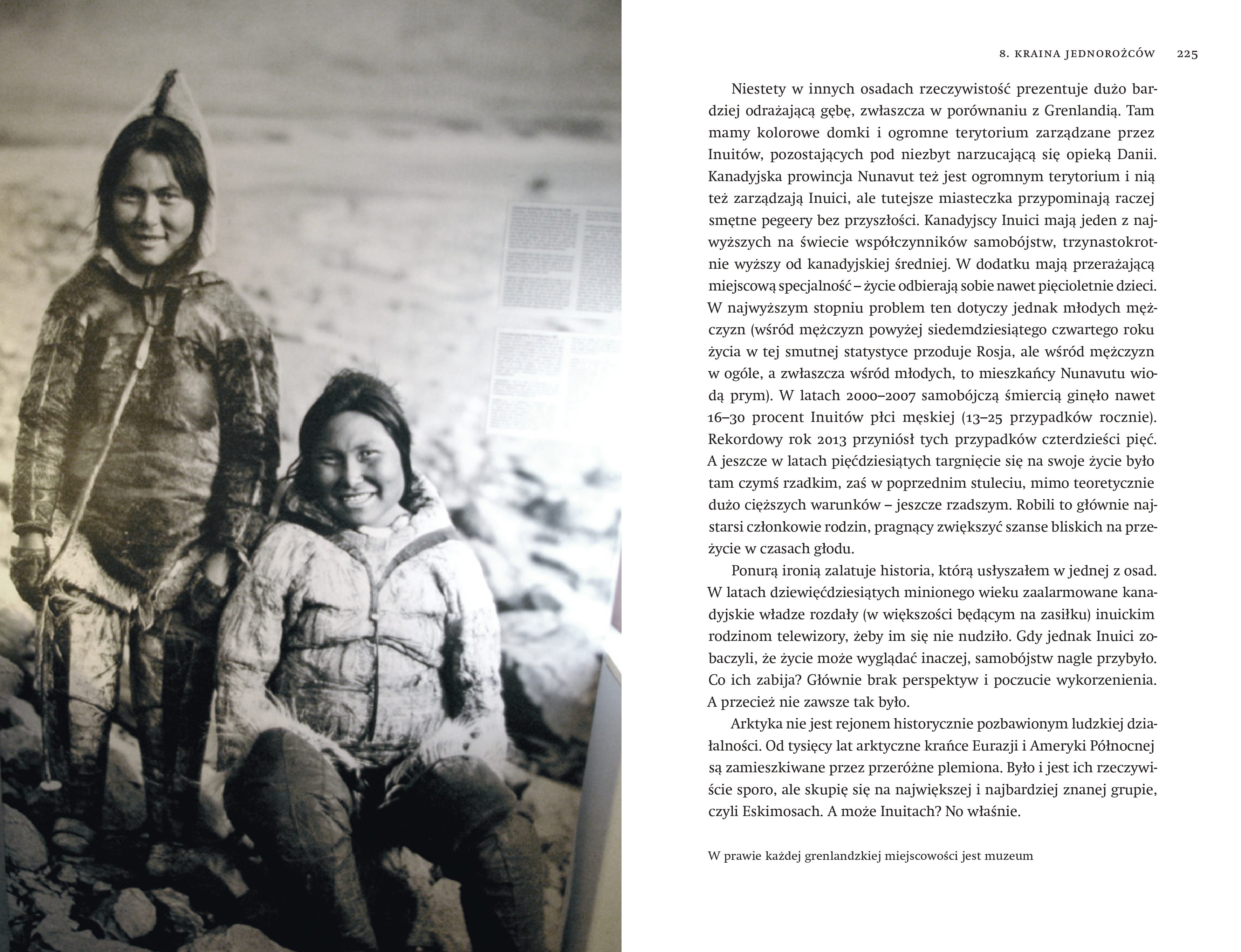 W swojej książce opowiada nie tylko o bliskich spotkaniach z dzikimi zwierzętami, ale też o pierwszych zdobywcach Arktyki i Antarktyki - o tych, którzy przeżyli, i o tych, po których słuch zaginął. O arktycznych plemionach, ich obyczajach (często zaskakujących), wierzeniach, i o tym, jak się skończył ich kontakt z białym człowiekiem. A także o najsmutniejszym dzieciństwie pewnego słodkiego puchatego ptaka - pochwodzioba.