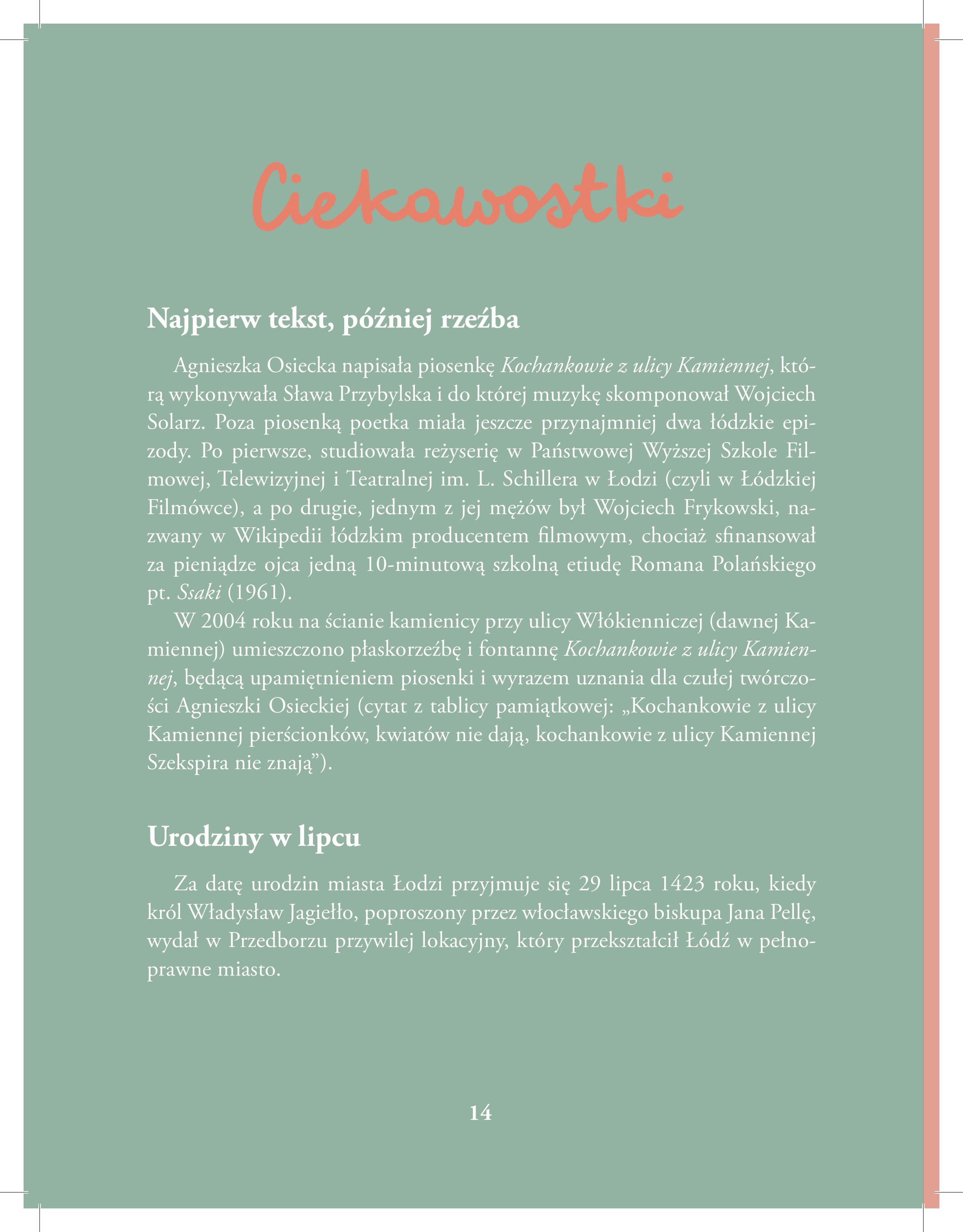 Uzupełnieniem treści książki są podkasty, zrealizowane przez autorkę z ekspertami i ekspertkami od różnych zjawisk społecznych, historycznych i kulturowych w Łodzi. Dzięki temu można dowiedzieć się więcej na wybrane tematy dotyczące Łodzi.
