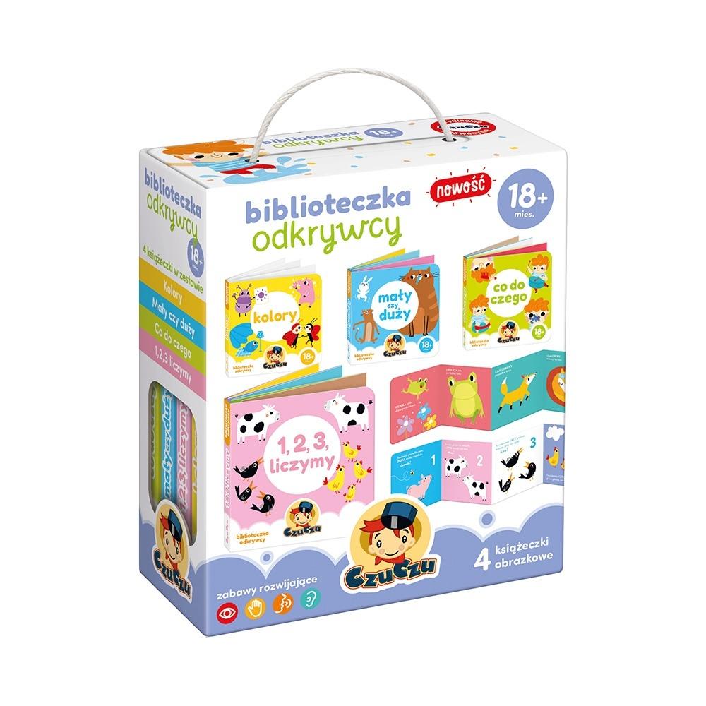 W edukacyjnym zestawie znajdziecie 4 długie książeczki harmonijki. Kolory, Mały czy duży, Co do czego i 1, 2, 3, liczymy w przyjazny sposób przedstawiają lubiane i nowe, inspirujące maluchy tematy. Choć powstały z myślą o dzieciach powyżej pierwszego roku życia, z powodzeniem będą rosły razem z nimi. Czytajcie razem, poznając przy tym kolory, przeciwieństwa, przeznaczenie różnych przedmiotów oraz koncepcję liczb! Piękne, pełne ciepła i humoru ilustracje zainspirują dzieci do zabawy. Proste rymowane wierszyki inspirują dzieci do nauki nowych słów i wyrażeń.