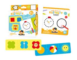 Mała akademia Kształty to książeczka do rysowania i edukacyjny zestaw puzzli dla dwulatków.