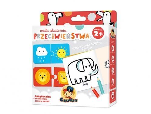 Mała akademia Przeciwieństwa to książeczka do kolorowania i edukacyjny zestaw puzzli dla dwulatków.