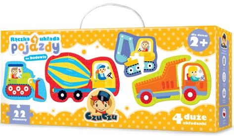 Na budowie praca wre. Wrum, wrum! Silniki w ruch!Zestaw puzzli dla małych wielbicieli wielkich maszyn. Każdy pojazd składa się z innej ilości elementów: czterech, pięciu, sześciu lub siedmiu. Puzzle są wykonane z najlepszej jakości materiałów. Zróżnicowany poziom trudności poszczególnych układanek pozwala na zabawę dostosowaną do możliwości dzieci.Szukanie, dopasowywanie i łącznie puzzli to świetne ćwiczenie koordynacji wzrokowo ruchowej, spostrzegawczości i logicznego myślenia. A co najważniejsze odjazdowa zabawa!