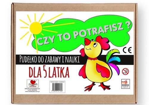 "Czy to potrafisz? Pudełko do zabawy i nauki dla 5-latka". Zestaw książek z dodatkami. W estetycznym pudełku, idealnie nadaje się na prezent. Wymiary pudełka 25x35 cm. Pudełko dodatkowo zabezpieczone folią. Zawartość pudełka: dwie książki do zabawy i nauki, w których ciekawe zadania, szlaczki, zygzaczki, łączenie punktów, zagadki, łamigłówki i wiele innych. W pudełku także dodatkowe zabawy, przeplatanki, naklejki, kredki lub ołówki.