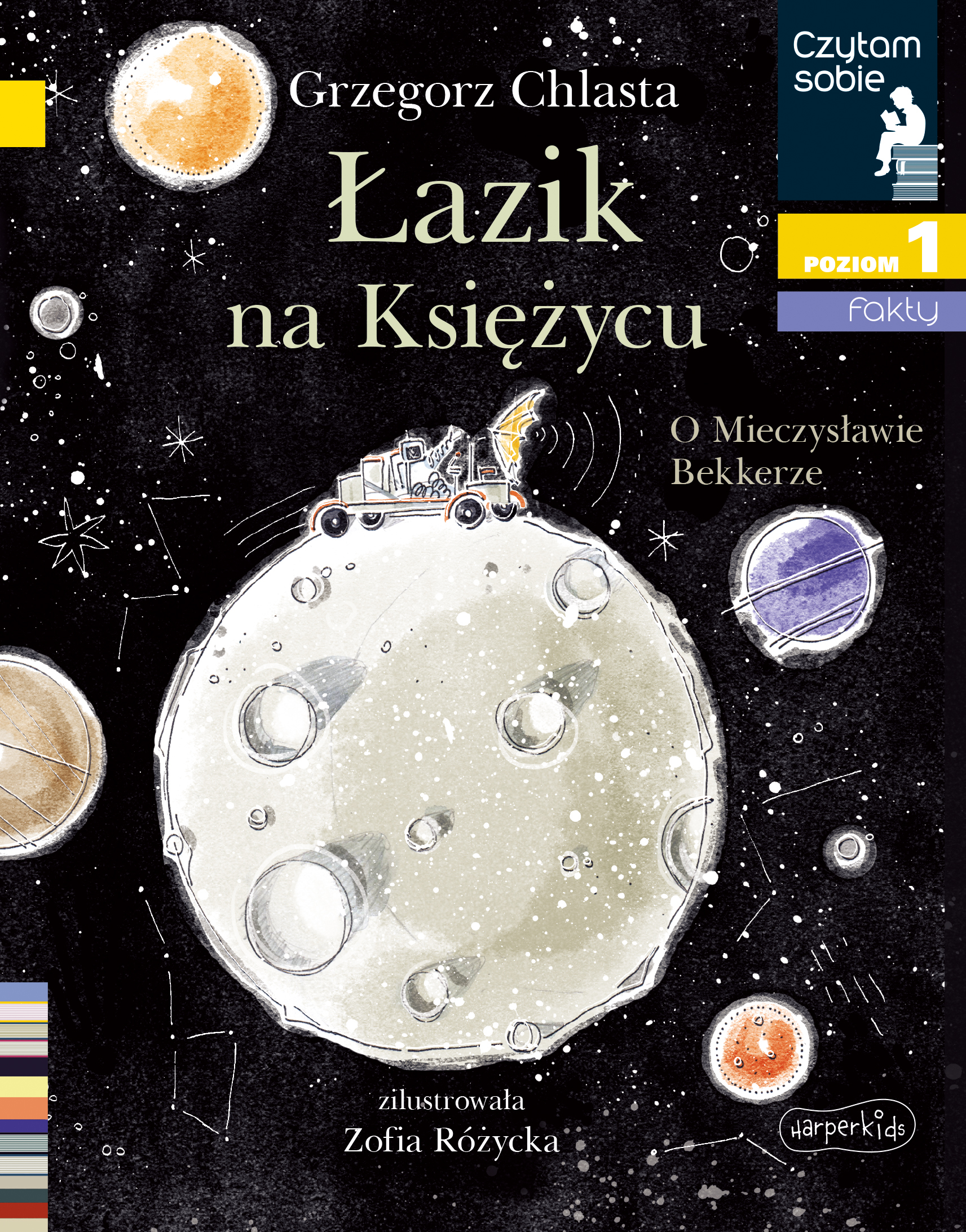 Książka z serii z kotylionem pozwala zanurzyć się w fascynujący, odległy świat podróży kosmicznych. W książce poznajemy losy naszego bohatera, chłopca Miecia, mieszkającego w Koninie. Chłopak od najmłodszych lat zafascynowany jest księżycem i obserwuje go z zapałem z okna swojego domu. Parę lat później dorosły już mężczyzna dołącza do zespołu, który ma za zadanie skonstruować łazik, pojazd przeznaczony do badania powierzchni ziemskiego satelity. "Łazik na księżycu. O Mieczysławie Bekkerze" to pozycja opowiadająca o prawdziwych marzeniach, które się spełniają oraz wielkiej pasji do odkrywania otaczającego nas świata.