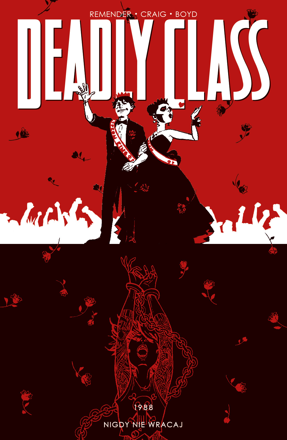 Mroczne i komiczne spojrzenia na lata 80 przez pryzmat alternatywnej wrażliwości Ricka Remendera. Ciąg dalszy niezwykle burzliwej historii Marcusa Lopeza Arguello i innych uczniów Kings Dominion. Album zawiera zeszyty Deadly Class 36-39.