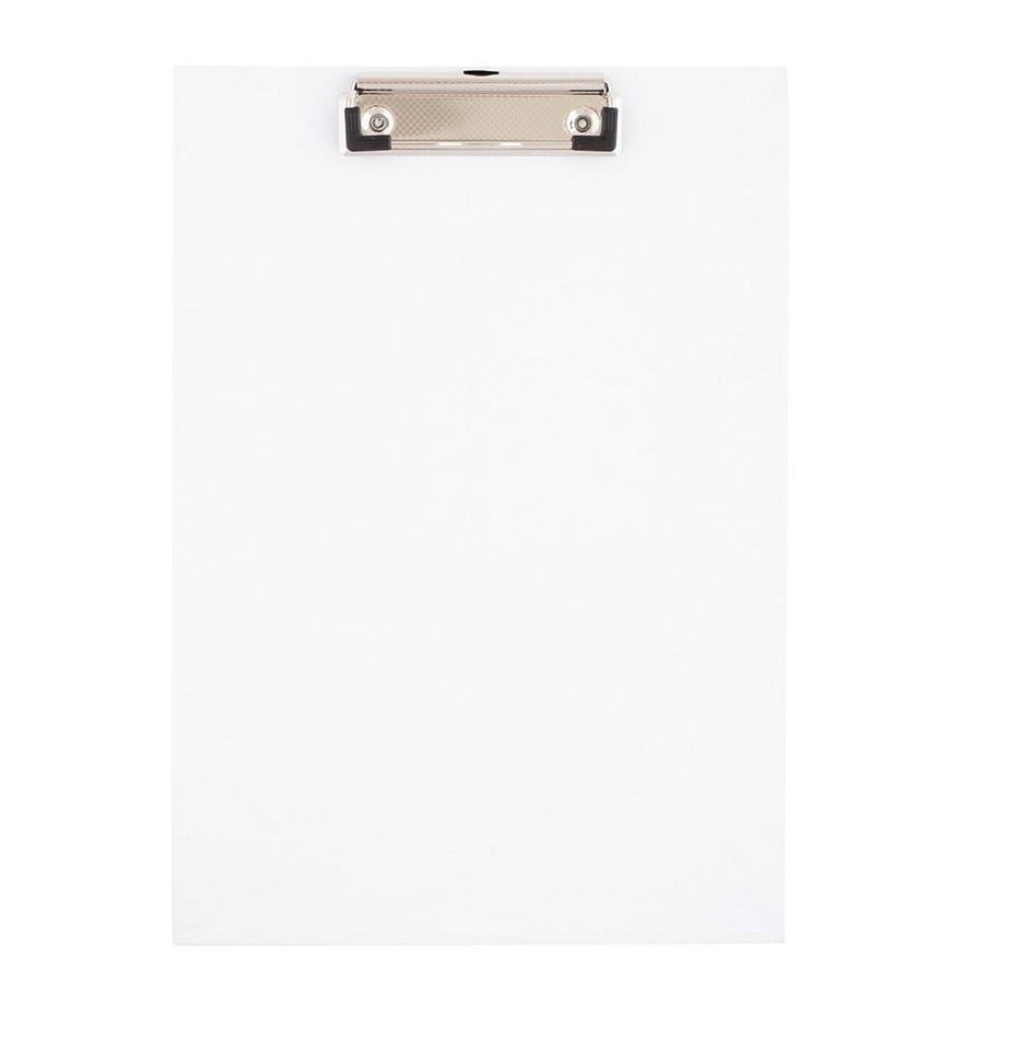 - sztywna podkładka wykonana z tektury, pokryta folią PVC - mocny klip z mechanizmem sprężynowym - format A4 - biała