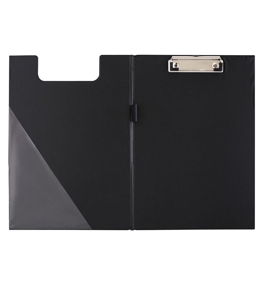 - sztywna podkładka wykonana z tektury, pokryta folią PVC - mocny klip z mechanizmem sprężynowym - okładka zabezpieczajaca dokumenty - dodatkowy uchwyt na długopis i transparentna kieszeń na wewnętrznej stronie okładki - format A4 - czarna