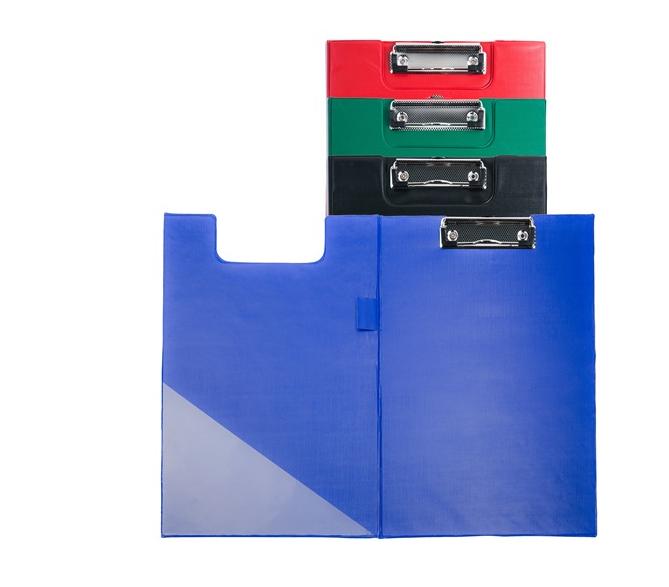 Opis produktu: - sztywna podkładka wykonana z tektury pokryta folią PVC - mocny klip z mechanizmem sprężynowym - okładka zabezpieczajaca dokumenty - dodatkowy uchwyt na długopis i transparentna kieszeń na wewnętrznej stronie okładki - format A5