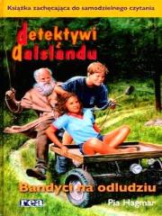 Nowa seria książek dla dzieci i młodzieży - poznaj przygody   młodych detektywów! ""Zżerani przez ciekawość, wszyscy trzej pochylili się   nad reklamówką. - Może są tu skradzione pieniądze Fritjofa - podsunął Aron, z   trudem łapiąc oddech. - Na pewno tu są - odparł Leo. Ale ich nie było. Brat   trzymał przed nimi niewielką wełnianą czarną rzecz. - Aha, to czapka, nie   sweter. I co z tego? - stwierdził Henke. - Nie widzisz? Przyjrzyj się - upierał   się Aron. - Myślę, że nasz braciszek ma rację. Wtedy Henke także to dostrzegł.   To nie była zwyczajna czapka, lecz kominiarka z wyciętymi otworami na oczy i   usta. Dokładnie taka, jaką zawsze noszą prawdziwi bandyci, kiedy napadają na   banki na filmach. W torbie były dwie takie kominiarki, a na samym dnie leżał   pistolet (.) Przez moment cała trójka stała cicho. W jednej chwili powietrze w   chacie się ochłodziło, mimo że był środek lata. To już nie była zabawa.""