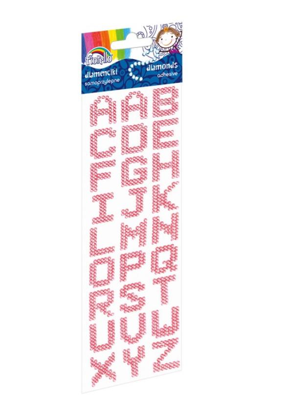 błyszczące diamenciki samoprzylepne w różnych kolorach i rozmiarach idealne do zdobienia projektów scrapbookingowych, kartek okolicznościowych, pudełek oraz wszelkich prac kreatywnych motyw: literki czerwone zgodne z wymaganiami UE