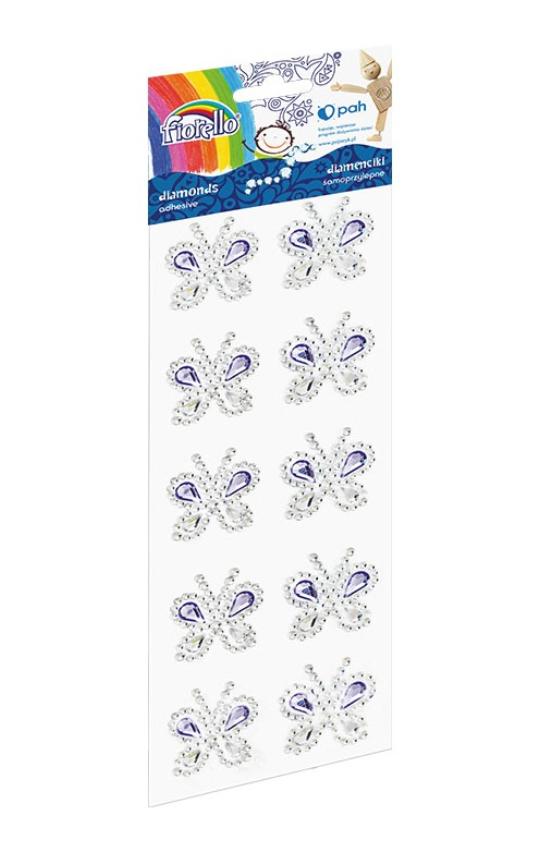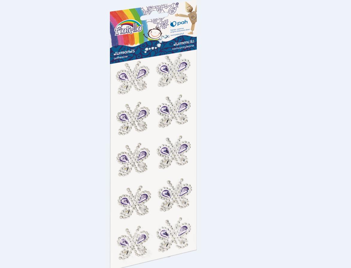 błyszczące diamenciki samoprzylepne w różnych kolorach i rozmiarach idealne do zdobienia projektów scrapbookingowych, kartek okolicznościowych, pudełek oraz wszelkich prac kreatywnych motyw: motylki zgodne z wymaganiami UE