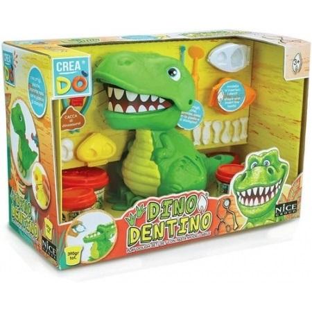 Dino Dentino to linia inspirowana miłością naszych dzieci do słodkich dinozaurów. Dzięki temu zestawowi dzieci mogą tworzyć zęby, odciski stóp, łuski, pazury, a nawet odkryć, co twój przyjaciel dino miał na obiad! Zawiera formy i akcesoria oraz masę do modelowania. Dla dzieci w wieku od 3 lat.
