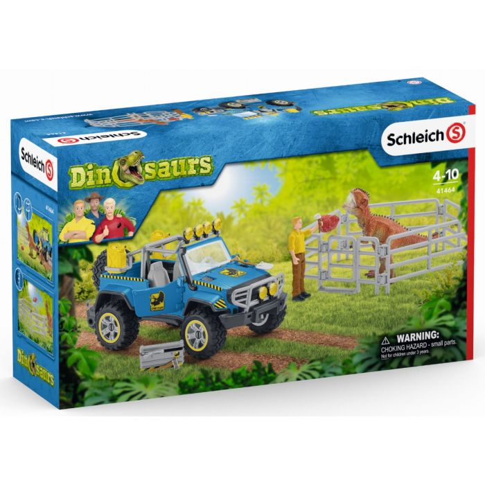 Samochód terenowy z miejscem dla dinozaura 41464. Samochodem terenowym Luisa szybko dotrze do stanowiska dinozaurów, by tam za pomocą mięsnej przynęty złapać gigantozaura. Na wypadek, gdyby podczas jazdy utknął na bagnach, ma przy sobie skrzynkę z narzędziami. Z jej pomocą bez problemu zmieni koła i wyciągnie pojazd wciągarką. Samochód terenowy ze stanowiskiem dinozaurów z serii Dinozaury Schleich(R) oferuje liczne możliwości zabawy. Odkryj cały świat dinozaurów Schleich(R) i niesamowite przygody braci Colby.
