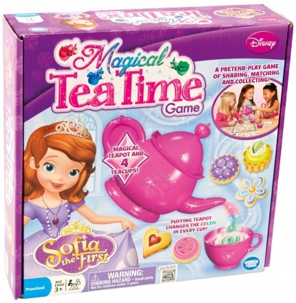 ROZWIJAJĄCA WYOBRAŹNIĘ GRA DLA DZIECIDopasowywanie, kolekcjonowanie, rozróżnianie! Już czas na herbatę z księżniczką Zosią! Cudowne filiżanki zmieniają kolor kiedy dmuchnie na nie magiczny czajniczek! Śliczne smakołyki tylko czekają, by znaleźć się na talerzu. Znajdą się na twoim, gdy kolory będą się ze sobą zgadzały. Zosia i dobre księżniczki nagrodzą cię za twe dobre maniery!ZAWARTOŚĆ: 1 czajnik-dmuchacz, 4 filiżanki, 1 plansza, 4 nakrycia, 3 czarodziejskie talerze pani domu, 36 kart-smakołyków.