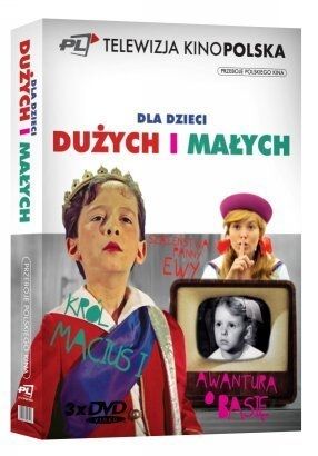 Kolejną kolekcją z serii „Przeboje Polskiego Kina”, którą Wydawnictwo Telewizji Kino Polska oddaje do rąk swoich widzów, jest box DLA DZIECI DUŻYCH I MAŁYCH zawierający trzy kultowe filmy dla dzieci i młodzieży, będące ekranizacjami powieści klasyków literatury dziecięcej: Janusza Korczaka i Kornela Makuszyńskiego. Awantura o Basię, Król Maciuś Pierwszy i Szaleństwa Panny Ewy to opowieści o losach dzieci, nad wiek odpowiedzialnych, wrażliwych i dojrzałych, które znalazły się w okolicznościach, którym nie sprostałby niejeden dorosły, a jednak zachowały marzenia, odwagę, nadzieję i wiarę, że warto być dobrym człowiekiem. Zabawne perypetie osieroconej dziewczynki i walczących o nią dwojga opiekunów, których mała doprowadza ostatecznie przed ołtarz, losy dzielnego chłopca, który nagle został królem, ale nie zaakceptował zakłamanego „porządku dorosłych” i przygody zbuntowanej, naprawiającej świat nastolatki, zmuszonej spędzić jakiś czas z dala od ukochanego ojca, u obcych ludzi, to trzy historie o kształtowaniu charakteru, harcie ducha a jednocześnie najlepsza rozrywka dla dzieci w starym stylu. Życiowe drogi Basi, Maciusia i Ewy to najlepsze lekcje empatii i potwierdzenie starej prawdy, że gdy myśli się i patrzy sercem, świat może tylko oddać radość, miłość i przyjaźń, którą daje się innym, z nawiązką.