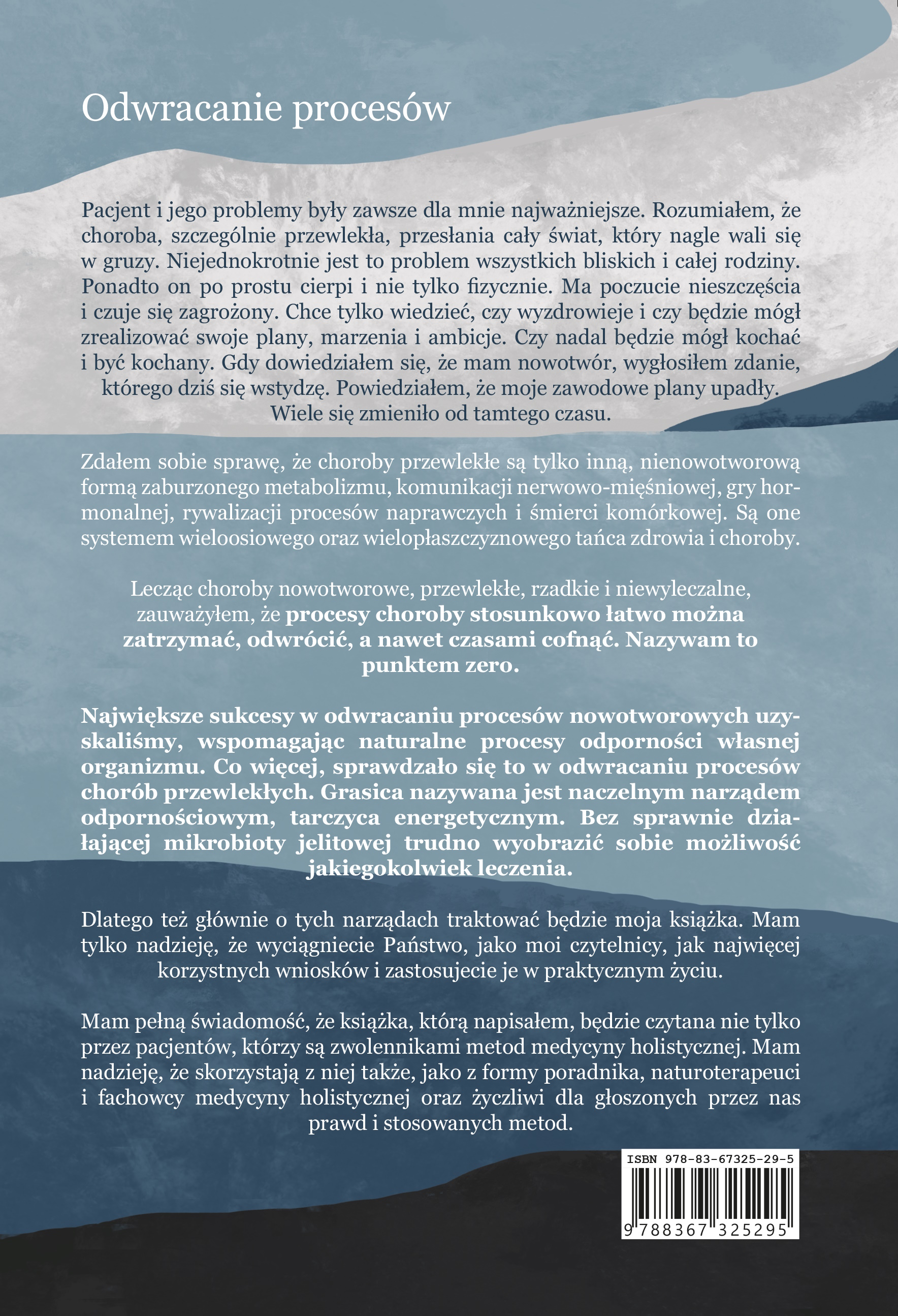 Druga książka lek. med. Andrzeja Więckowskiego, tym razem o odwracaniu procesów chorób przewlekłych. Intencją autora do napisania jej, była chęć rozszerzenia wiedzy na temat procesów odpornościowych oraz przyczyn powstawania chorób, z którymi boryka się większość naszego społeczeństwa. Nie braknie w tej pozycji również wiedzy z zakresu profilaktyki oraz odpowiedniej diagnostyki, która jest niezbędna, by wybrać odpowiednią drogę do zdrowienia.