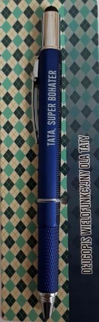 Długopis to sprytny gadżet posiadający 6 funkcji: długopis, miarka, poziomica, końcówka Touch, śrubokręt płaski i krzyżakowy.