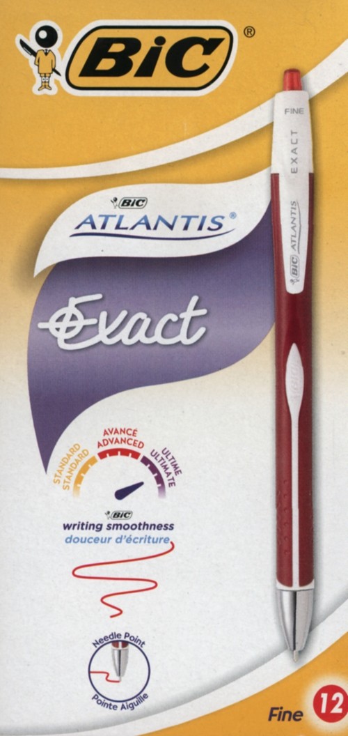 Długopis Atlantis Exact w kolorze czerwonymDługopis z igłową końcówką w nowej technologii, która łączy precyzje i gładkość pisania. Dzięki technologii Easy Glide istnieje możliwość osiagnięcia o 35% gładszego, równego i delikatnego pisania.Cechy:- średnica końcówki: 0,7mm,- szerokość linii pisania: 0,3mm,- kolor: czerwony.