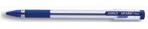 Wysokiej klasy długopis z niklowo-srebrną końcówką 0,7mm zakończoną kulką wolframową, tusz niebieski o niskiej zawartości wiskozy czyni pisanie wyjątkowo lekkim, wygodny grip ułatwia trzymanie w dłoni, indywidualny kod kreskowy, firmowe pudełko 12 sztuk, seria: SparkLine, wyprodukowano w Indiach.