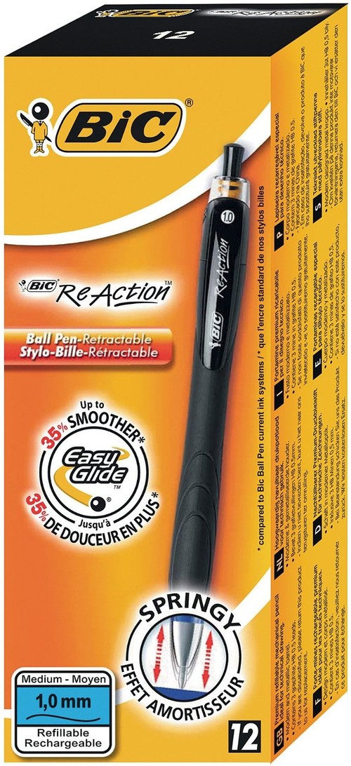 Płynne pisanie, aż o 35% gładsze, system tuszu porównywalny do systemu w obecnym długopisie BIC. Automatyczny długopis z wymiennym wkładem. Płynnie i gładkie pisanie dzięki sprężystej końcówce. Średnia linia pisania dzięki końcówce 1 mm.12 sztuk w pudełku.