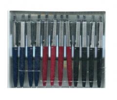 Długopis w plastikowo-metalowej obudowie, trwały mechanizm włączający, wymienne wkłady SCHMIDT FINE 0,7 mm, tusz niebieski i czarny. Plastikowe etui do każdego długopisu. Dostępne kolory obudowy: czarny, niebieski, bordowy.