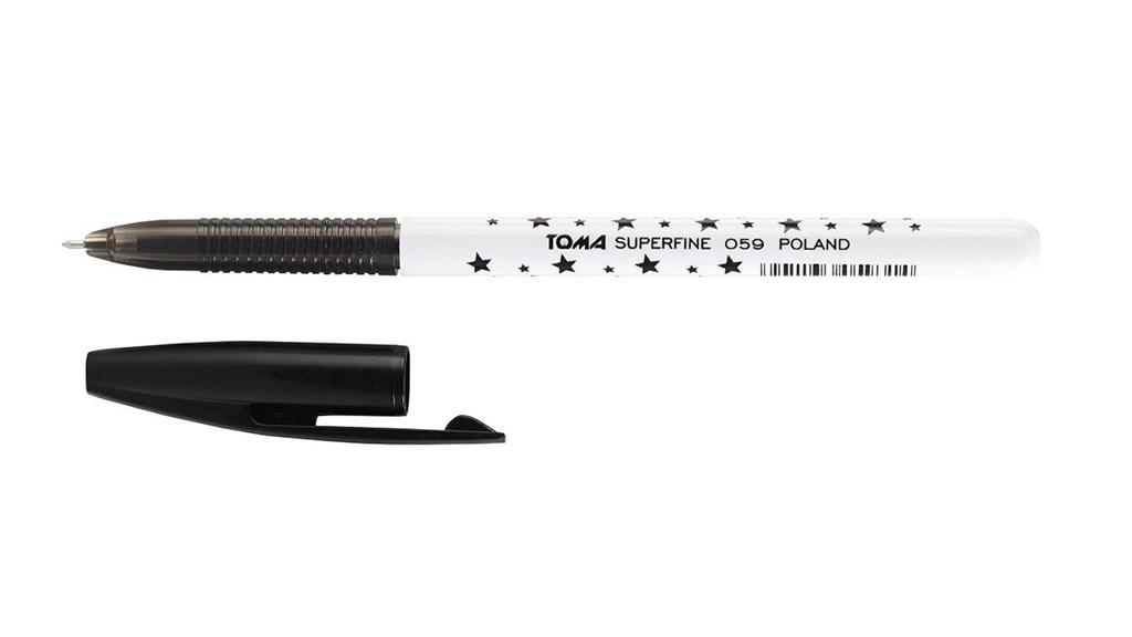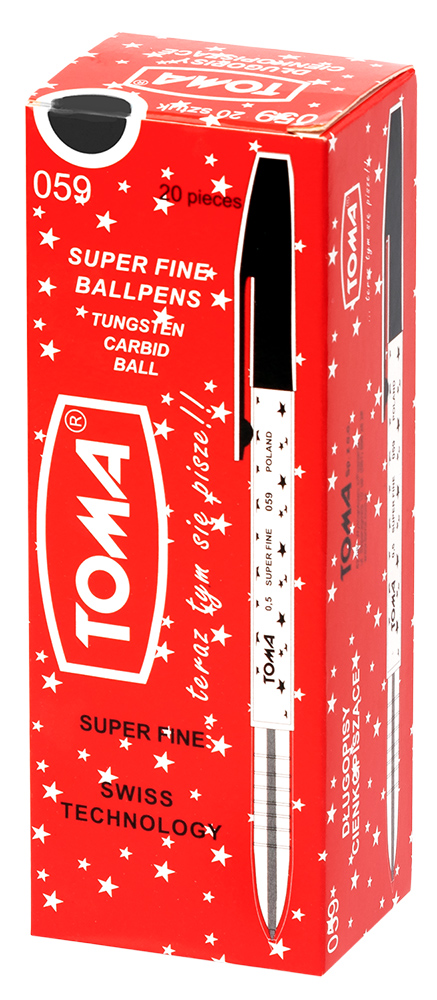 Długopis jednorazowy w plastikowej obudowie w gwiazdki w kolorze tuszu, wentylowana nasadka, trwała kulka z węglików spiekanych wolframu 0.5 mm. Super cienko-piszący opatentowany wkład Floating Ball ® szwajcarskiej firmy Premec.