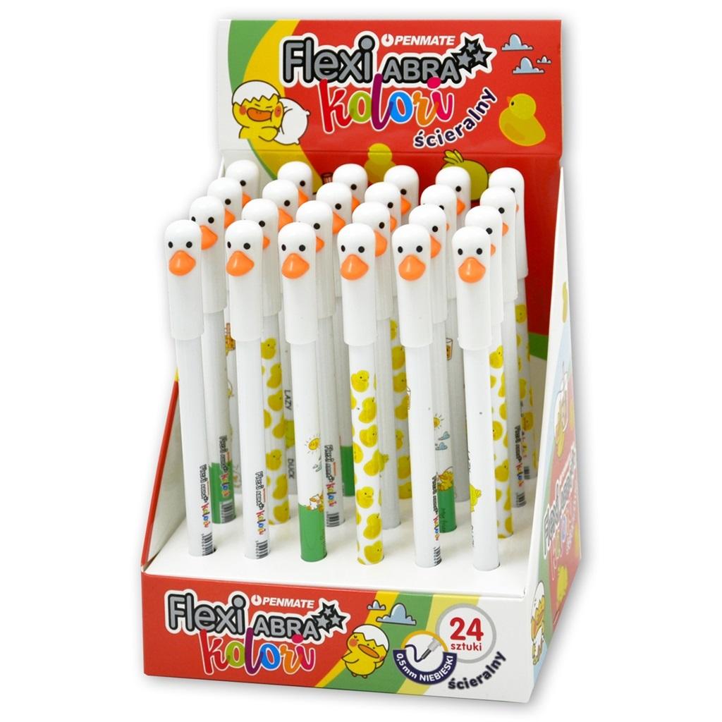 Długopisy ścieralne Daki. To kolorowe fantazyjne długopisy z nowej serii. W każdej chwili można wymienić wkład. Wszystkie długopisy mają niebieski wkład.