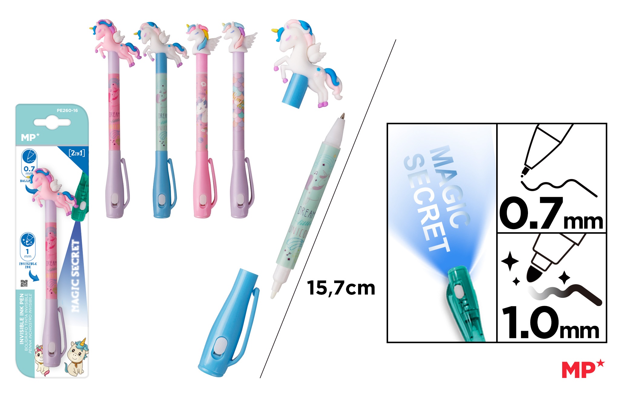 Długopis szpiegowski UV 0.7/1.0mm Jednorożce MIX