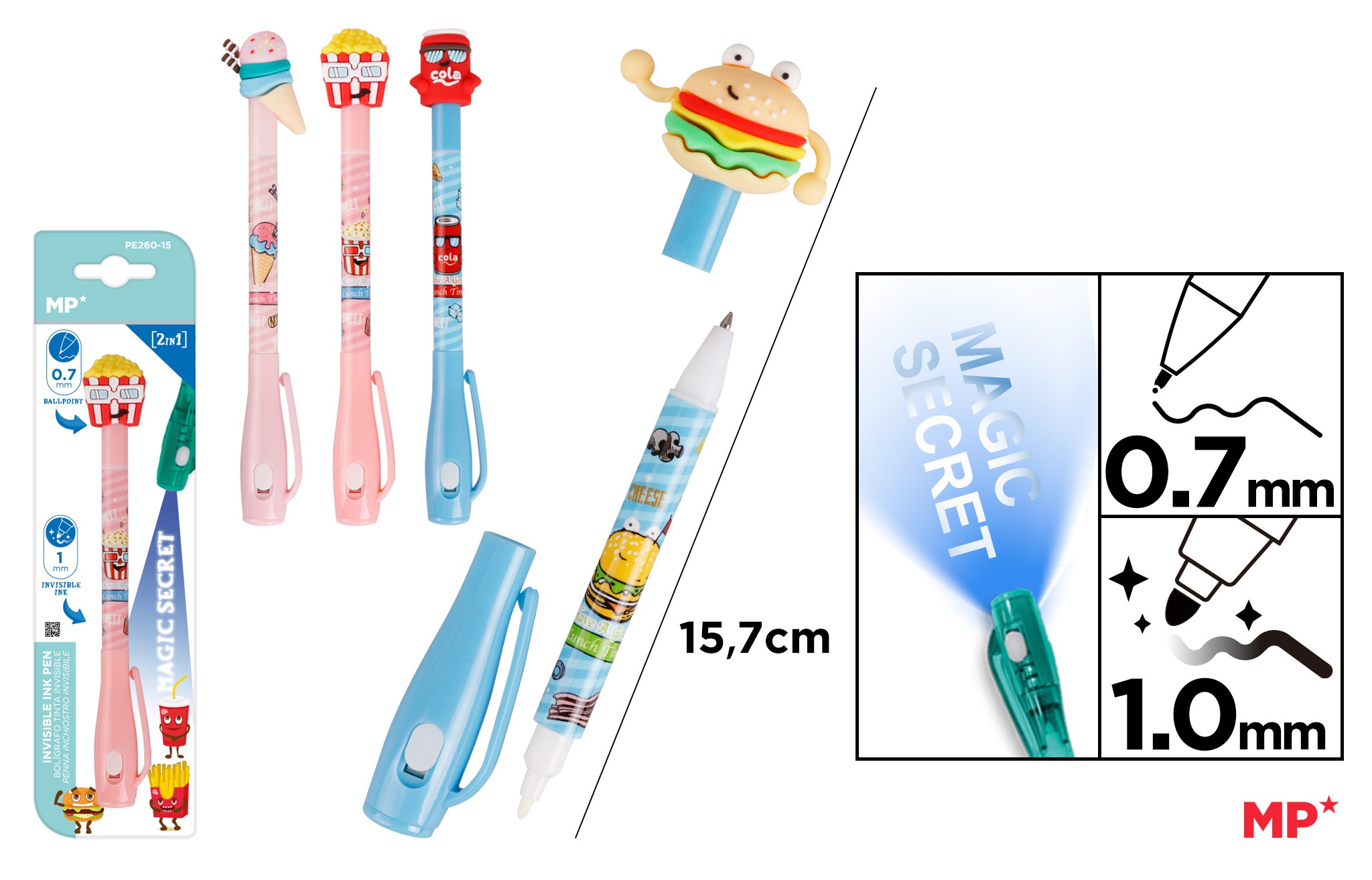 Długopis szpiegowski UV 0.7/1.0mm Jedzonko MIX