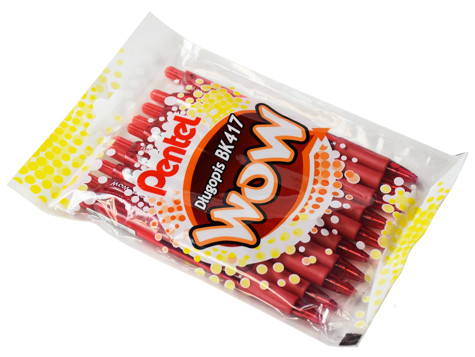 Wykonany ze świetnych materiałów charakteryzuje się zachęcająco długą linią pisania - 1500m, która wzmacnia jego ekonomiczne atrybuty. NOWOŚĆ firmy PENTEL choć kosztuje tyle co Chupa Chups powstawał w wyniku zaawansowanej technologii - a dobra cena i jeszcze lepsza jakość zasługują na jeszcze większe WOW, być może stąd ten intrygujący przydomek? BK417 WOW zachwyci całe biuro, wprowadzając niepohamowane pokłady twórczej radości, jednocześnie zadowalając osoby planujące budżet na artykuły papiernicze. Ten model, oprócz tego że mało kosztuje, starcza na długo i podnosi efektywność pracy w biurze, to niezwykle atrakcyjnie się prezentuje. Wesołe kolory obudowy przyciągają spojrzenia, rozweselając przestrzeń biura, ożywiając każde biurko i piórnik. Gumowy uchwyt działa antypoślizgowo, podnosząc komfort użytkowania tego modelu. Funkcjonalny klip wepnie się w każdą kieszeń i notes, ułatwiając przenoszenie długopisu z miejsca na miejsce. Podsumowując - wielkie WOW dla małej ceny i najlepszej jakości! Długość linii pisania 1500m. Grubość końcówki 0,7mm. Grubość linii pisania 0,27mm. Wkład wymienny BKS7E. Cechy wyróżniające - Atrakcyjna cena! Doskonała jakość.