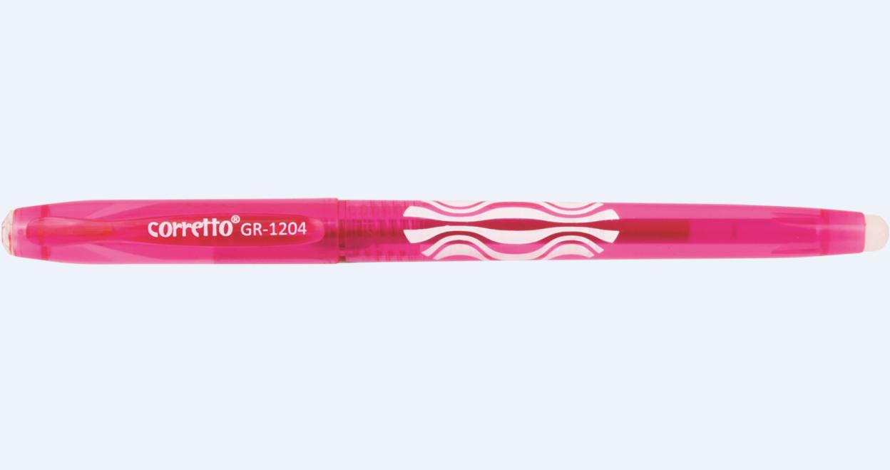 długopis wymazywalny z wymiennym wkładem wymazywanie za pomocą gumki na końcu długopisu tusz znika także po podgrzaniu kartki tusz wodoodporny kolor różowy długość pisania: 210 m grubość linii 0,5 mm opakowanie 12 sztuk
