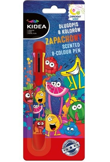 Długopis zapachowy z wkładami w ośmiu intensywnych kolorach: czarnym, niebieskim, zielonym, pomarańczowym, czerwonym i fioletowym. Jego dodatkowym atutem są słodkie, przyjemne zapachy każdego z kolorów, które uatrakcyjniają produkt i sprawiają, że dzieci chętniej po niego sięgają. Jego precyzyjna końcówka ułatwia pisanie oraz dokładne wyróżnienie odpowiednich fragmentów tekstu. Funkcja 8 w 1 sprawia, że jest on niezbędny w piórniku każdego dziecka, a zajmuje tak niewiele miejsca.
