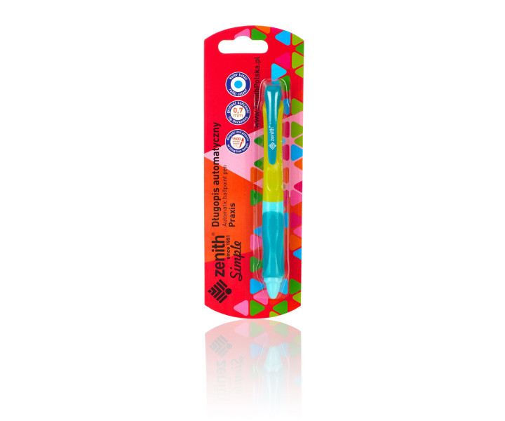 Długopis automatyczny dla prawo i lewo ręcznych. Ergonomiczny, gumowy uchwyt. Wyjątkowa lekkość pisania. Niemiecki tusz. Grubość końcówki 0,7 mm Długość linii pisania 1500 m kolor tuszu - niebieski