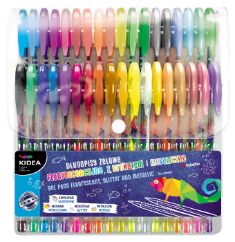 Długopisy żelowe to idealny zestaw do szkoły. Posiadają aż 36 różnych kolorów, w zestawie znajdziemy długopisy metaliczne, brokatowe i fluorescencyjne. Długopisy idealnie sprawdzą się do wyróżnienia tekstów oraz przygotowania ważnych notatek.