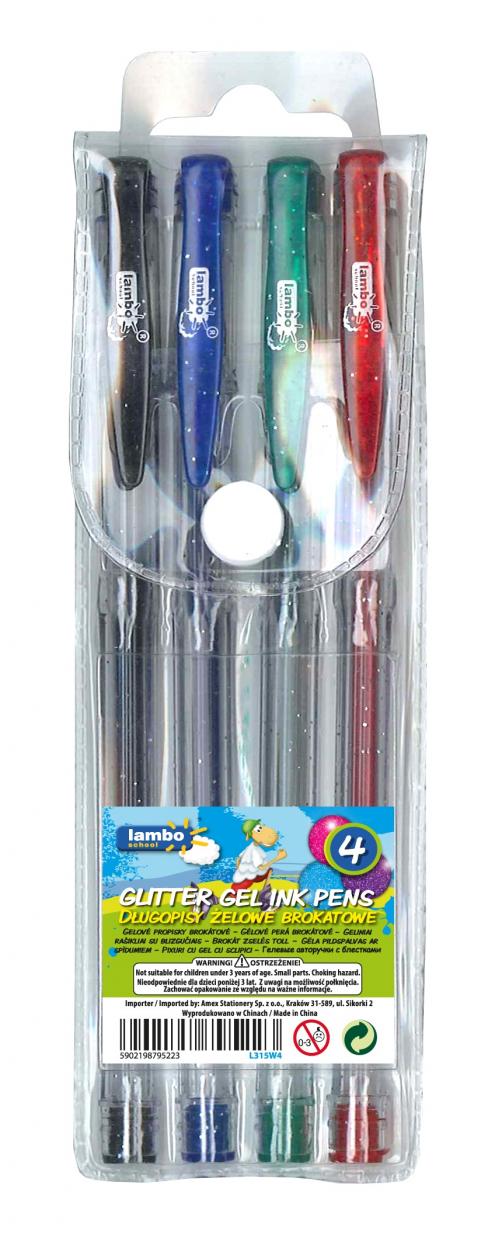 Długopisy żelowe brokatowe 4 kolory LAMBO