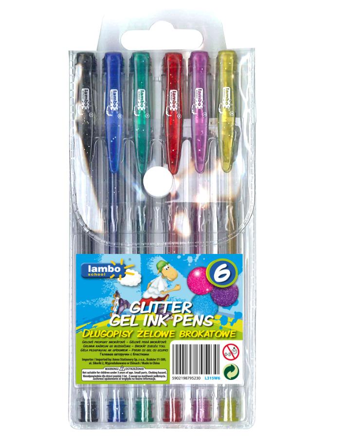 Długopisy żelowe brokatowe 6 kolorów LAMBO