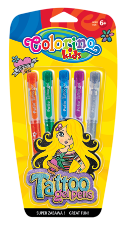Długopisy żelowe do tatuażu z szablonami Colorino Kids 5 kolorów