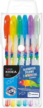 Długopisy żelowe to idealny zestaw do szkoły. Posiadają aż 6 brokatowych kolorów. Długopisy idealnie sprawdzą się do wyróżnienia tekstów oraz przygotowania ważnych notatek.