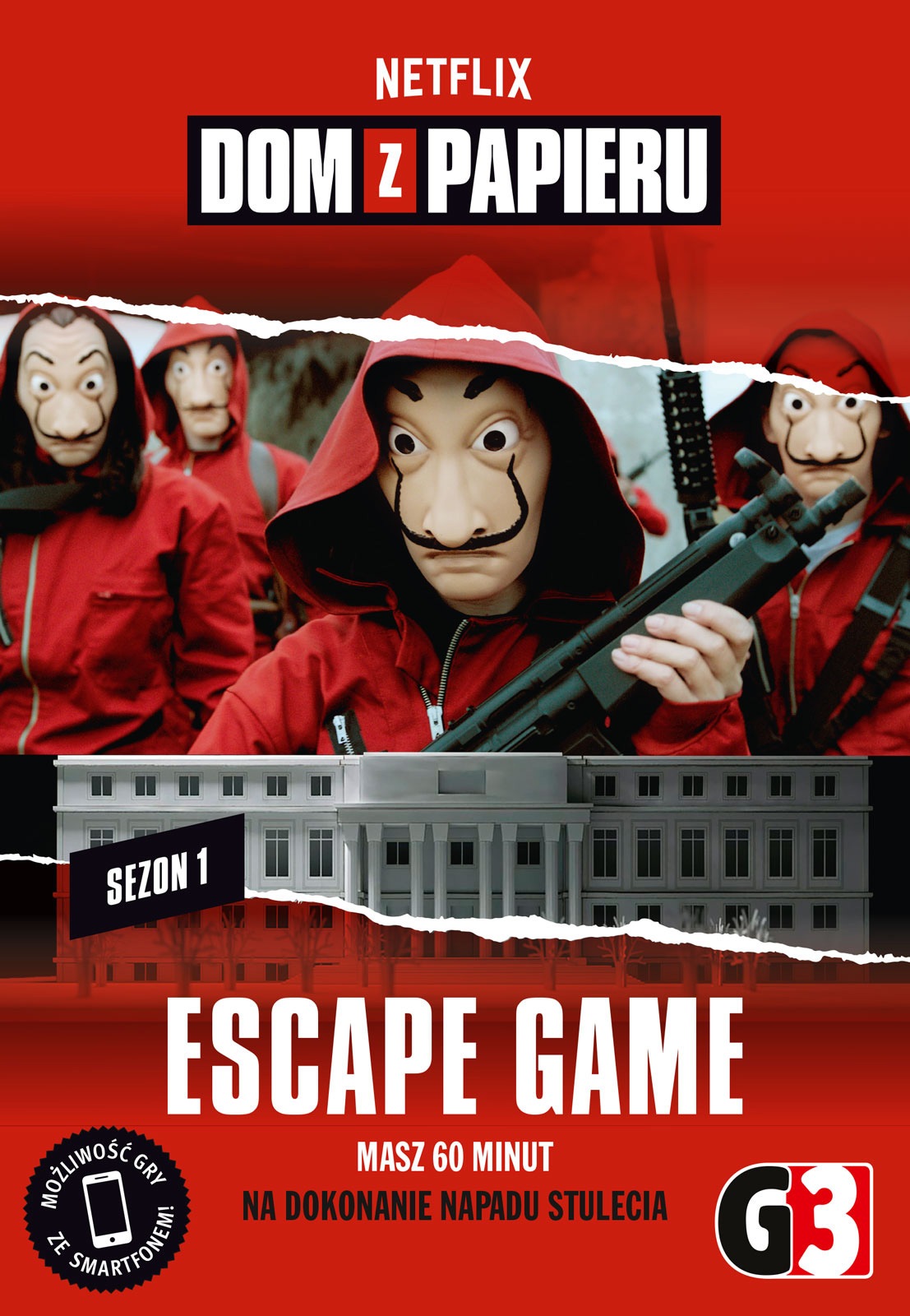 Należysz do gangu, który planuje napad stulecia! Celem jest wydrukowanie 2,4 mld euro w hiszpańskiej mennicy narodowej. Genialny Profesor, który wymyślił ten napad, poprowadzi cię przez poszczególne etapy swojego planu. Postępuj zgodnie z jego instrukcjami, a już do końca życia nie będziesz musiał pracować! Ekscytująca gra z licznymi nawiązaniami do fenomenalnego serialu "Dom z papieru". Włam się do drukarni banknotów w Hiszpanii i na każdym kroku przeżywaj nowe przygody! Uwaga: podczas rozgrywki będziecie potrzebować kilku kartek, ołówków i nożyczek. W grę można również grać bez instrukcji. Potrzebny będzie smartfon lub komputer z dostępem do Internetu. Aby zagrać w ten sposób, trzeba wejść na stronę www.domzpapieru.g3poland.com jeszcze zanim przygoda się rozpocznie! ZAWARTOŚĆ: 9 kart postaci 30 kart ze wskazówkami 15 kart etapów 1 plan budynku hiszpańskiej mennicy narodowej instrukcja