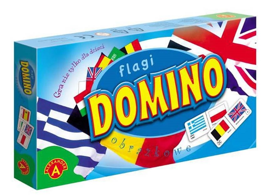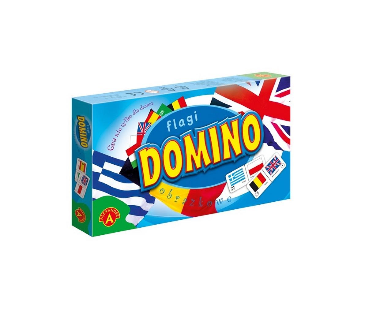 Flagi. Domino obrazkowe"", to kolorowa, obrazkowa wersja domina. W trakcie gry, każdy jej uczestnik stara się dołożyć jeden ze swoich elementów do układu leżącego na stole. Elementy dokłada się dopasowując ze sobą ich obrazki. Zwycięzcą zostanie ten, kto pierwszy pozbędzie się swojej puli elementów. Przy okazji gracze uczą się jakie kraje reprezentują flagi znajdujące się na poszczególnych elementach.
