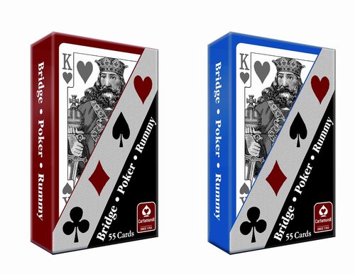Klasyczna talia brydżowa dostępna w kolorze niebieskim.