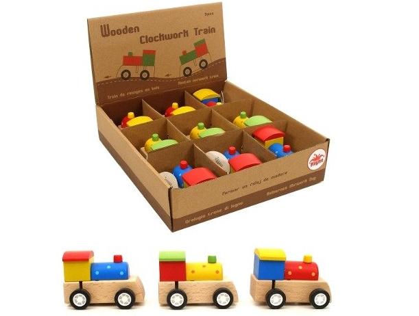Lokomotywa drewniana - nakręcana, wielkości 7 cm, różne wzory.