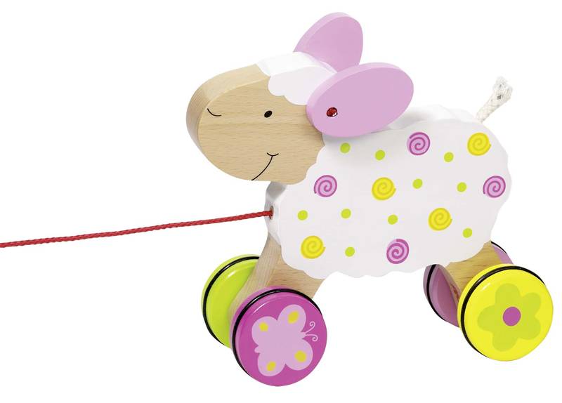 Piękna owieczka z kolorowymi łatkami w kształcie kółeczek będzie wspaniałym towarzyszem spacerów.